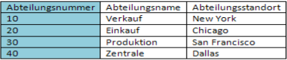 Abteilung(Abteilungsnummer, Abteilungsname, Abteilungsstandort)