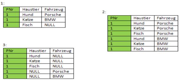 Person (PNr, Haustier, Fahrzeug) PNr →→ Haustier, PNr →→ Fahrzeug